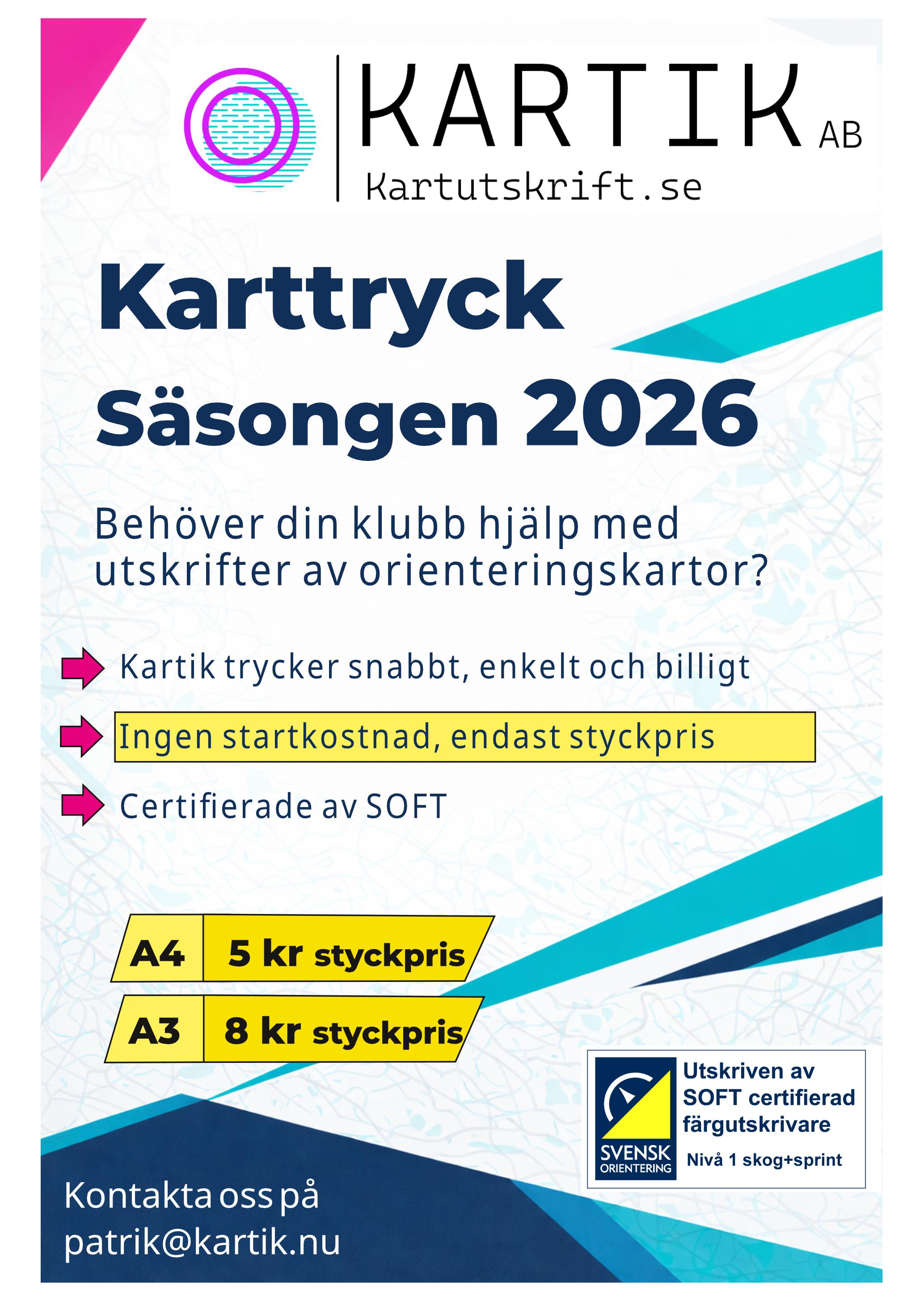 Vi arbetar med OCAD. Om du skickar in Purple pen-filer så tillkommer timkostnad för konvertering.
